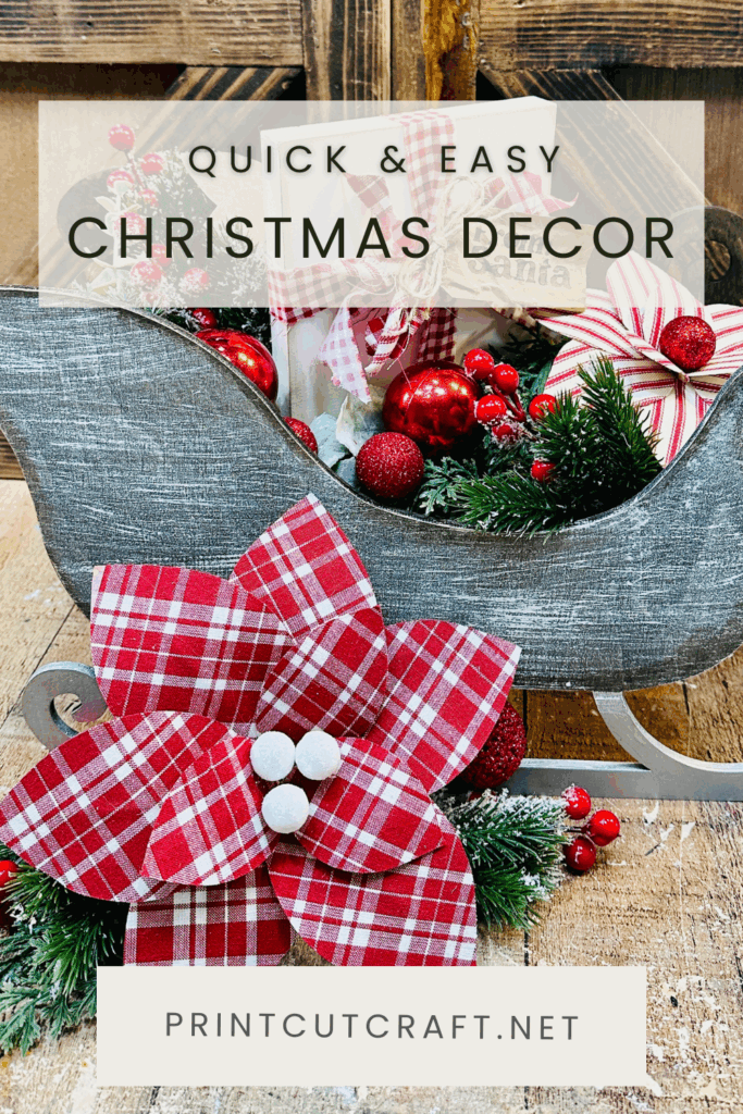 Nothing says holiday cheer quite like handmade Christmas décor — and this month’s PCC Box project delivers just that! We’re crafting a rustic winter sleigh, complete with a plaid fabric poinsettia and a charming “From Santa” wood gift tag. With cozy textures, festive greens, and pops of red, this project captures the magic of a handmade Christmas. You’ll use wood cutouts, floral wire, fabric, and even your Cricut machine to create layers of seasonal charm that will look perfect on your mantle, entryway table, or as part of a gift display.