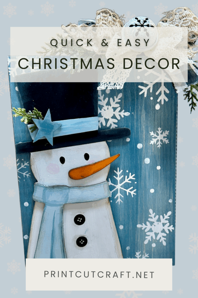 Bring cozy, frosty charm to your home with the Snow Happy You’re Here Winter Sign, this season’s featured project from the PCC Box. This winter DIY project layers a chunky wood snowman on a painted snowflake background and finishes with greenery, lace and buffalo-check ribbon, and a jingly bell topper. Using wood craft blanks, paint, brushes, your Cricut machine, Vinyl or DTF Transfers for the snowflakes and wording, ribbon, greenery picks, and simple embellishments, you’ll create a dimensional piece that’s perfect for the winter season—whether you style it on a mantel, entry table, or shelf.